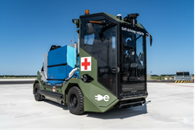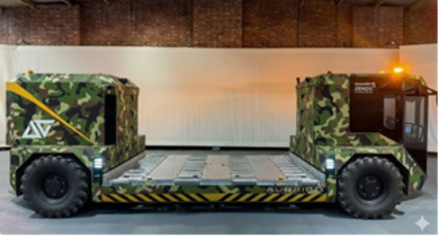 soldiers as we did in both World Wars. The Russian invasion of Ukraine has shown us that drones are the future in the air, but Andrew believes it will go much further and can see that an Aurrigo cargo trolley could easily become an autonomous missile launcher or an Aurrigo baggage dolly can become an autonomous “injured person recovery vehicle”. Andrew believes that Aurrigo has technology that could transform certain military equipment and that just could be the icing on what is already a huge cake. Andrew couldn't resist going onto Google Gemini and seeing what these military vehicles might look like.